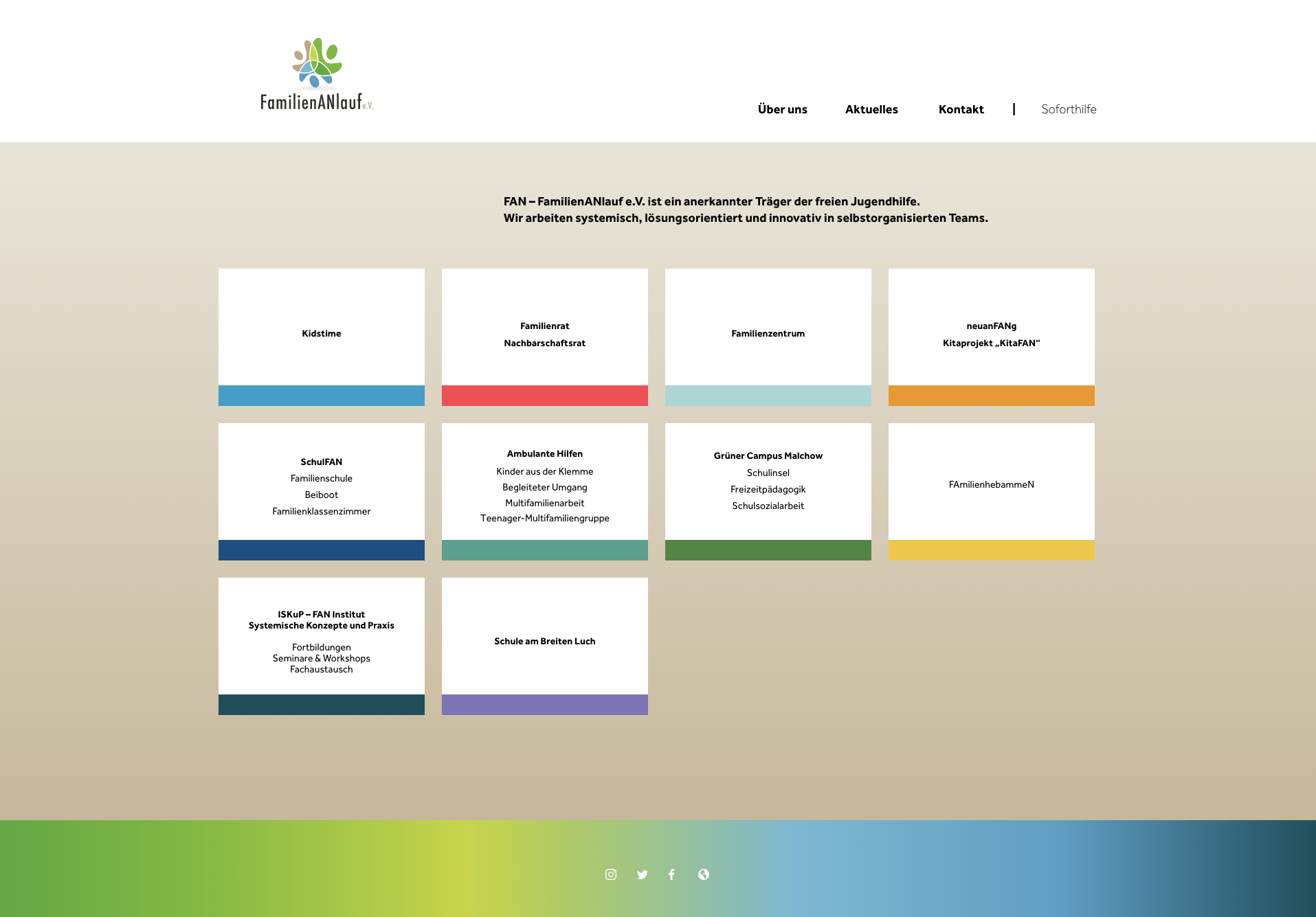 Für familienanlauf.de und die angeschlossenen Angebote entstand ein umfangreicher digitaler Auftritt für den FAN FamilienAnlauf e.V.