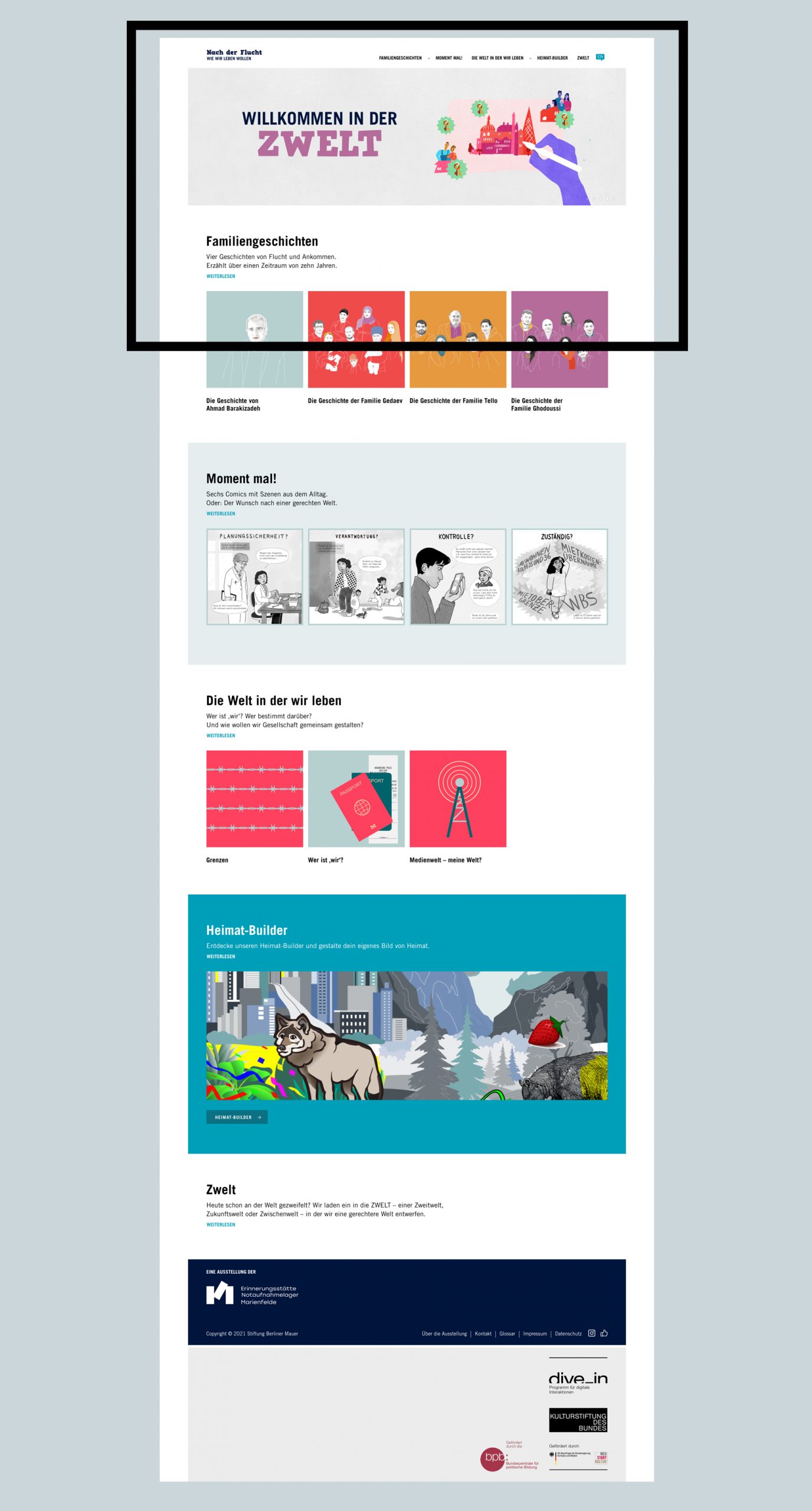 Für die Online-Ausstellung „Nach der Flucht“ entstand eine Website, die biografische und dokumentarische Inhalte in eine klar strukturierte, digitale Form überführt. Die Ausstellung macht individuelle Flucht- und Familiengeschichten sichtbar und verbindet persönliche Erzählungen mit historischen und gesellschaftlichen Kontexten.